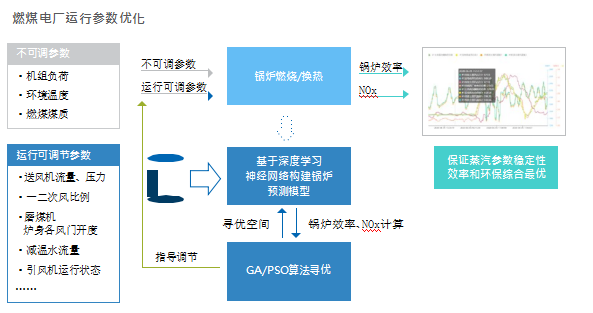 要,其中一个关键环节是提升燃煤发电过程中的能量转换 效率从而降低碳排放。数智技术通过采集电厂丰富的历史 运行数据,建立基于深度学习算法的能效优化模型,获取 电厂运行各系统(锅炉,汽轮机等)的随出力变化的最佳运 行参数曲线,保障电厂在运行出力的全范围内实现能效最 优,从而最大限度地降低发电生产的碳排放(图2.7)。