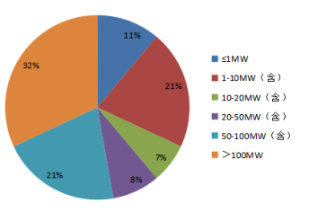 总装机大于 50MW(5 万千瓦)的项目数量占比超过 50%(32%+21%)。总装机小于等 于 10MW 的项目数量占比为 32%(11%+21%)。此外,内燃机项目数量占比约为 23.6%,不 足 1/4。目前区域型天然气分布式项目数量依然较多,这一现状在未来有望发生改变。