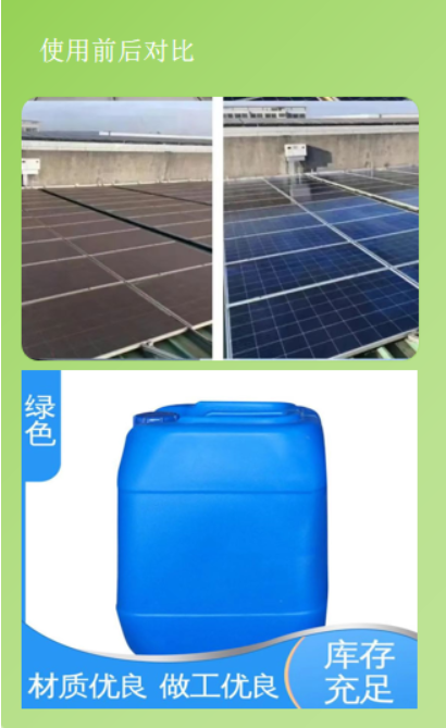 安全无腐蚀 保护设备:中性pH值(6.5-7.5),不损伤玻璃镀膜、硅片及边框材质,避免传统强酸/强碱清洗剂导致的组件老化问题。